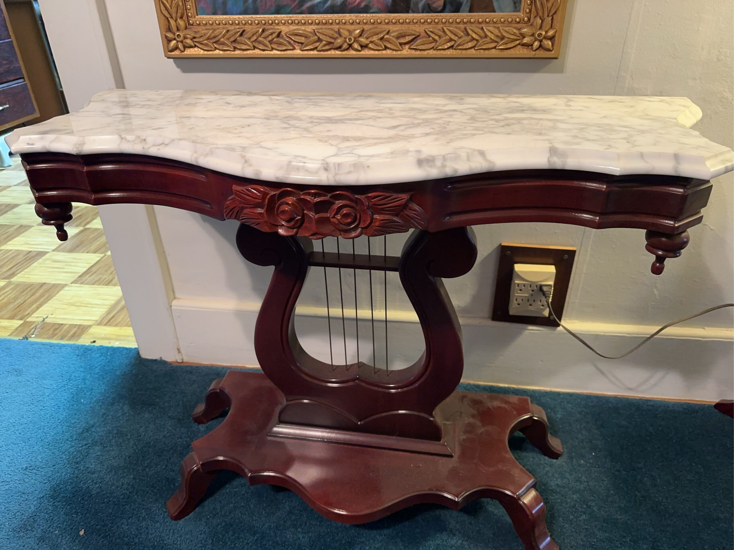1970 Lincoln Continental Mark III, tools, furniture, household items, 8′ plastic tables (folding), marble top tables, lamps, Craftsman push mower 5.5hp and a 75″ Sony flatscreen TV