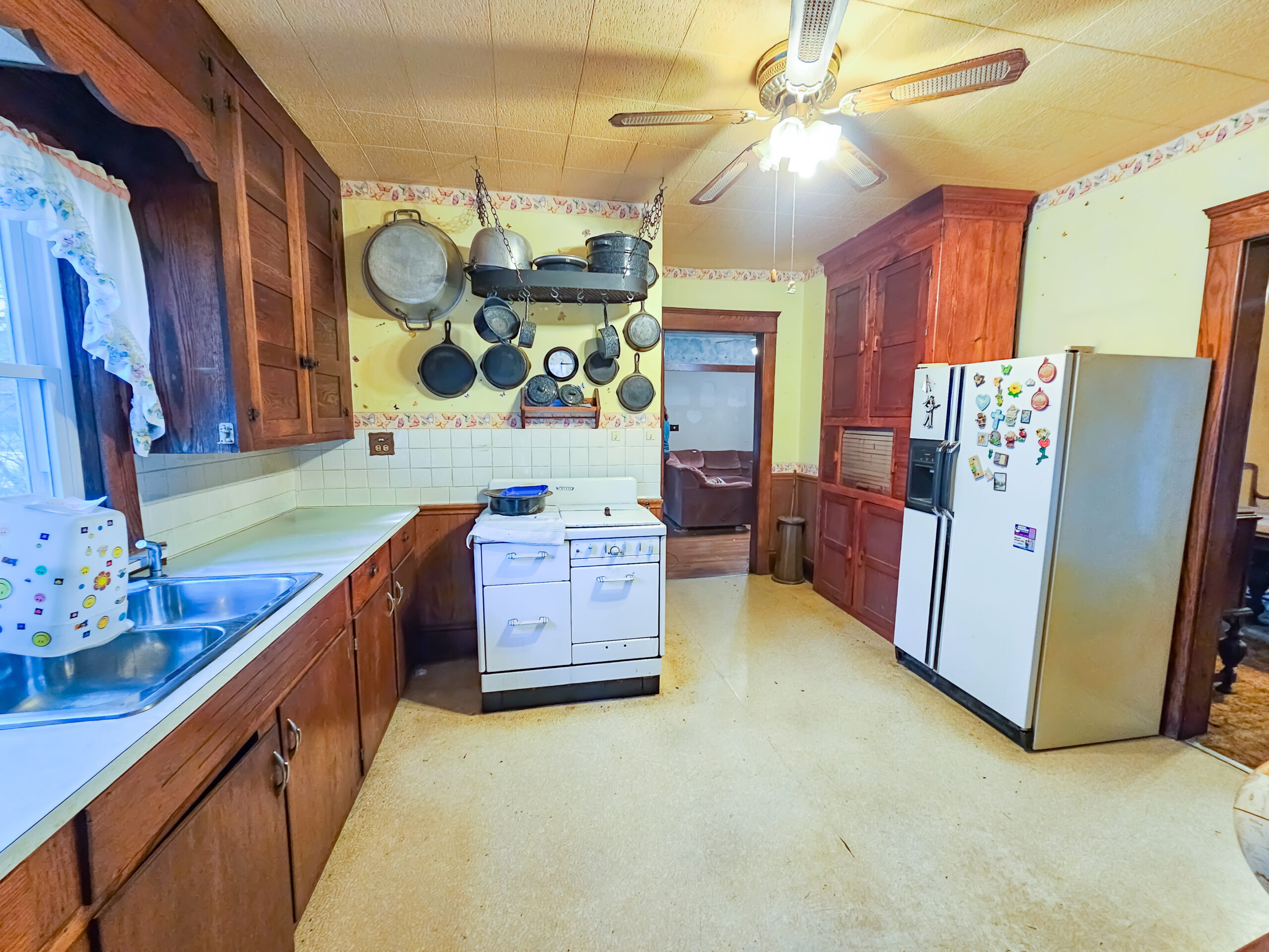 Welcome to this 1914 two story colonial home offering 1,696 sq ft located on a spacious .939 lot in Sugarcreek Twp, Fairless LSD. This home presents a wonderful opportunity for those looking to invest a little TLC into a conveniently located property in the quaint village of Beach City. The main level offers an applianced kitchen with an attached laundry room and full bath, dining room, and large living room with wood burning fireplace. Upstairs you will find 3 nice sized bedrooms and a full bath with a cast iron tub. The basement has an option to offer versatile living options with a private walk-out entrance, kitchenette, half bath, living and bedroom areas. There is a single car attached garage and a detached oversized 2+ car garage (w/ electric service) providing ample storage space. Additional features include a large covered front porch, some vinyl replacement windows, gas hot water heater, boiler heat, window ac unit, slate roof, lots of attic storage space and hardwood floors throughout. The home is serviced by public utilities and has 200 amp electric service. Half year taxes $897.77 currently on homestead reduction. Home and sale preview – auction day starting at 9am. Call John Marino 330-309-7653 or Tiffany Terlecky 330-575-3822 with any questions.